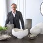 Made from Portuguese ceramic, our Asymmetrical Stipple Vases feature a surface that mimics the artistic technique of Stippling. The flat, round body of these vases is smooth on the upper half, while the bottom is seemingly wrapped in a rough texture.
