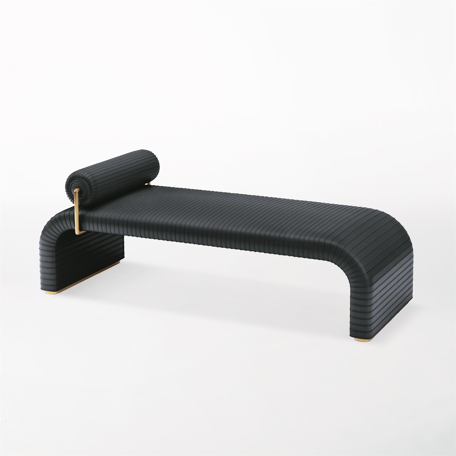 Our Cade daybed is one of the cool kids, no doubt. A shape dreams are made of with expertly stitched leather pleats that cover the entire body and bolster. A satin brass base elevates this design to the next level.