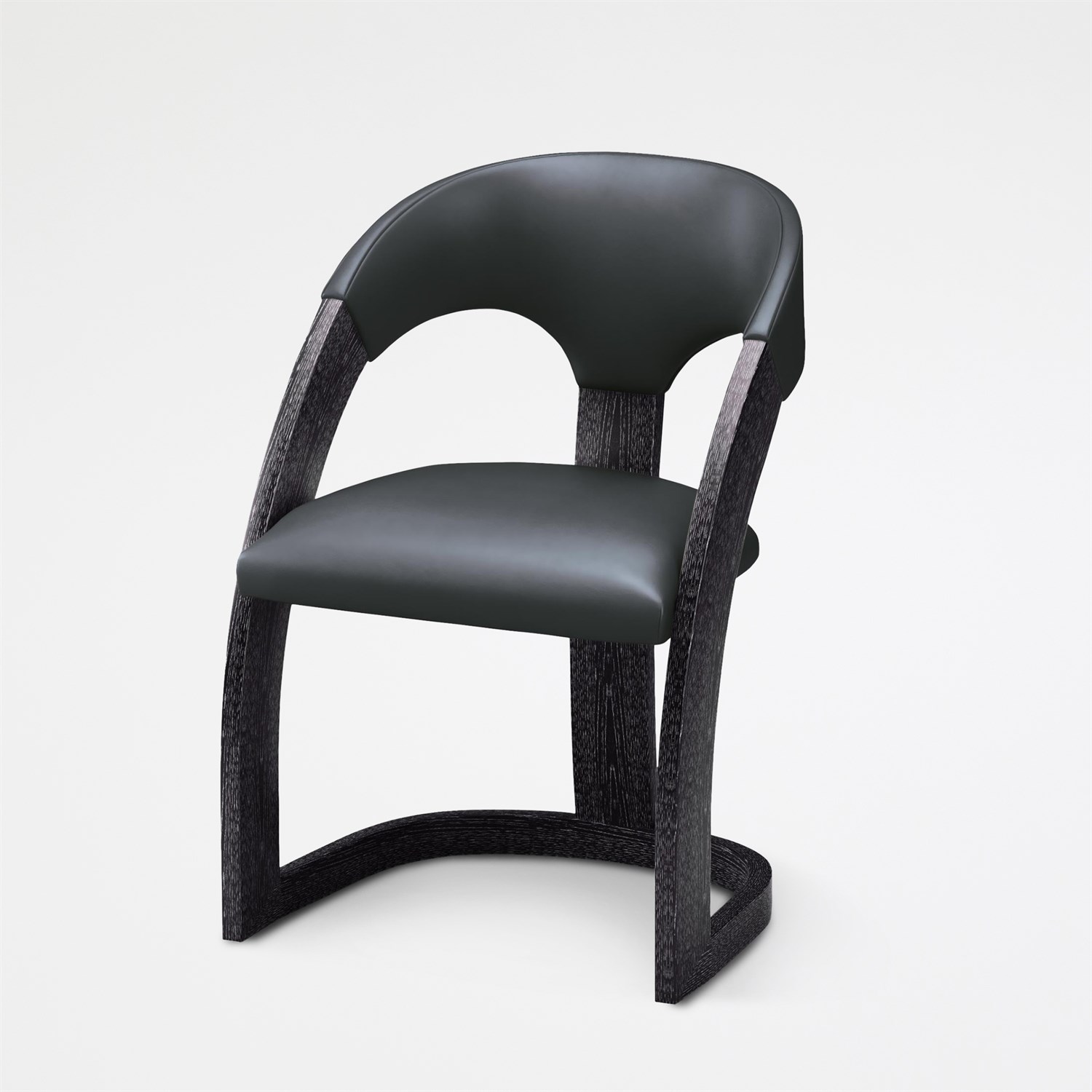 Delia Dining Chair-Ebony Cerused-Graphite Leather