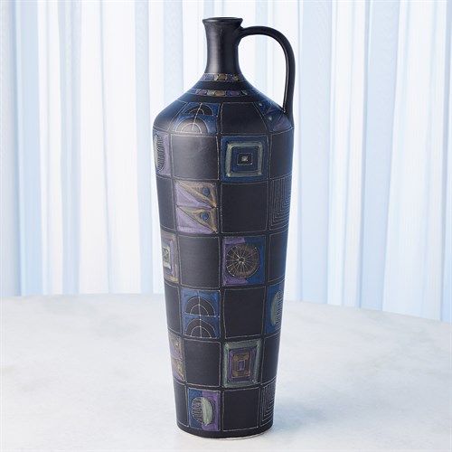 Italian ceramic Etched Bottles are hand-formed and impressed with various shapes and designs. Dimension is added to the patterns with hand painting. Each size has a unique pattern.