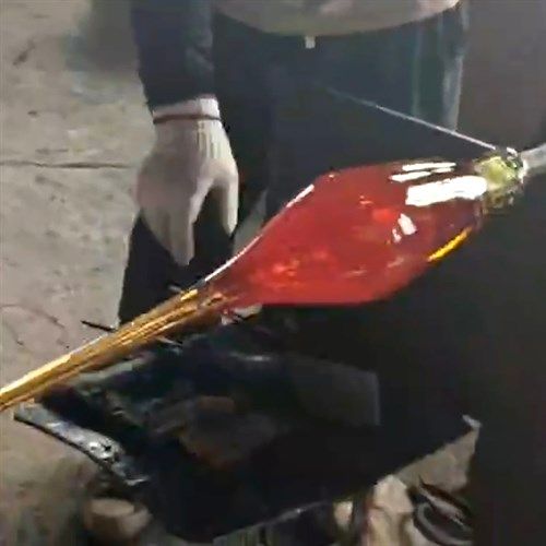 Crafted with meticulous attention to detail, our Flecked Spire Bottles are handblown and mold-formed using a glassblowing technique that combines clear and amber glass with striking gold flecks. Each unique piece showcases a captivating interplay of color and light, making it a stunning addition to any décor.