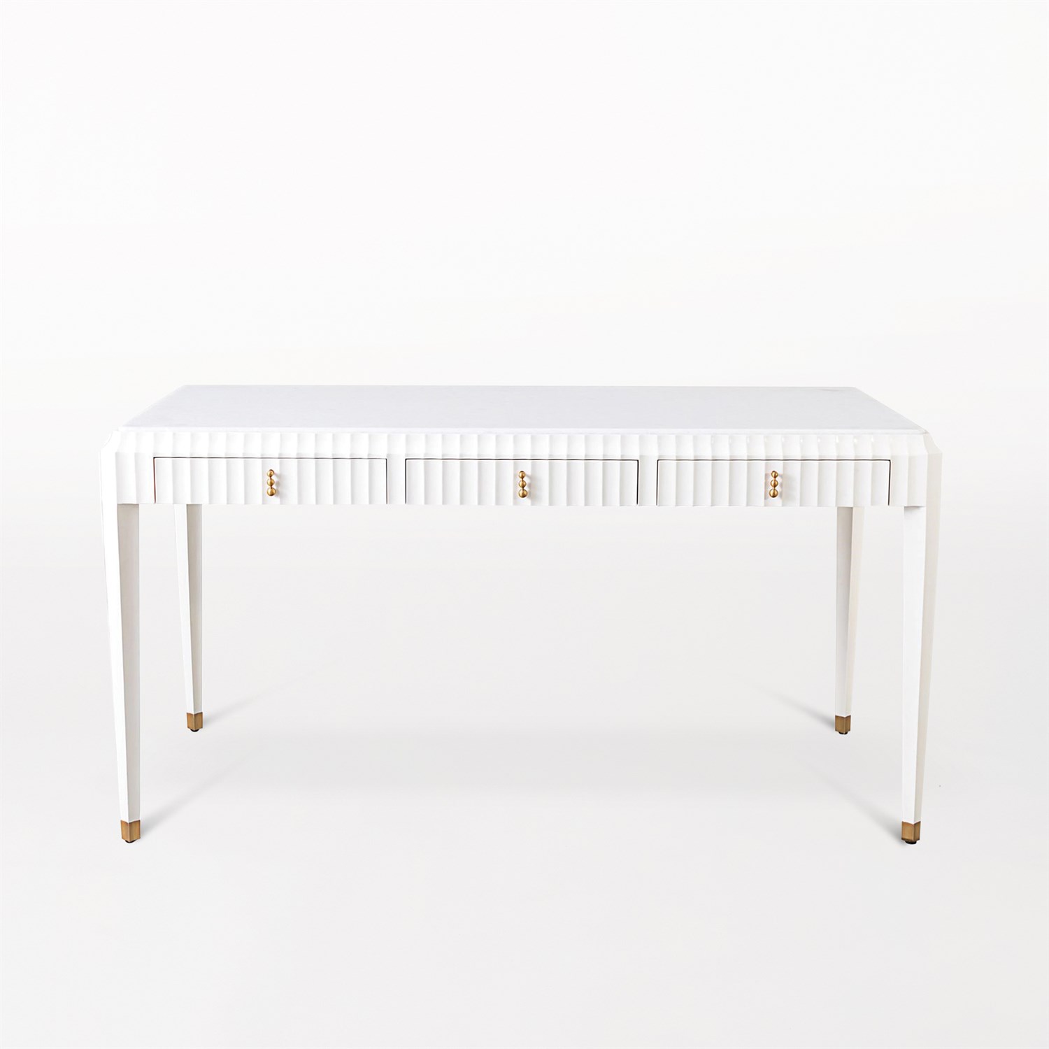 A study in feminine form and artistic details, our Fountain Collection is classically chic and elegantly modern all at once. Gracious proportions, gorgeous fluting in a soft ivory finish, honed marble tops and hand cast brass pulls make this collection one of Ashley’s favorites.