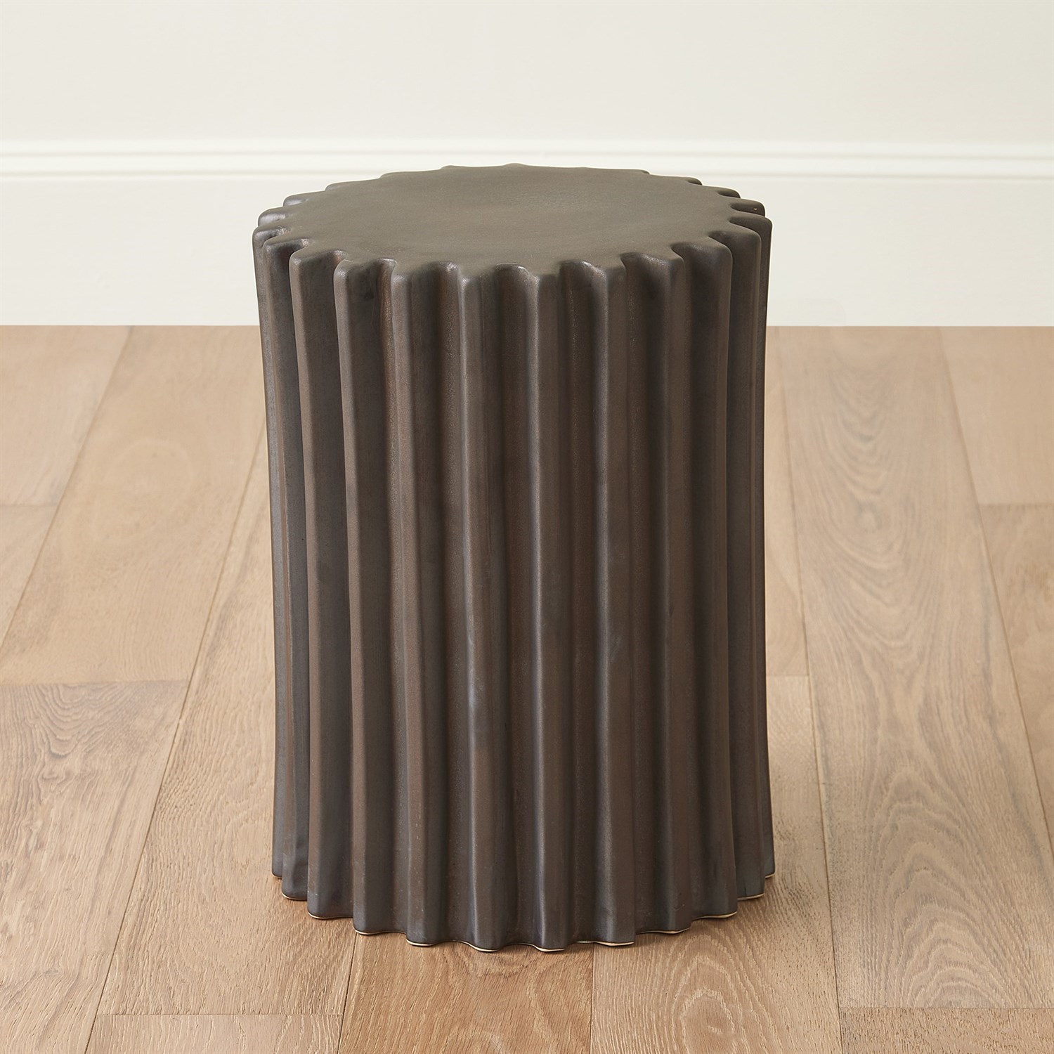 With their fluted ceramic shape and matte brown finish, the Gear Stools reflect industrial design through a minimalist lens. Whether used as plant stands or low side tables, they offer understated functionality in both indoor and covered outdoor settings.