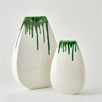 The Giant Teardrop Vases are beautifully handcrafted from Portuguese slip-molded ceramic, adorned with a hand-applied emerald green reactive glaze that creates a beautiful dripping effect.