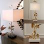 A symbol of longevity and unity, the Ginkgo Tree is known for its miraculous powers. Our Ginkgo Table Lamp is made from brass with a polished nickel finish and sits atop a solid black marble base.