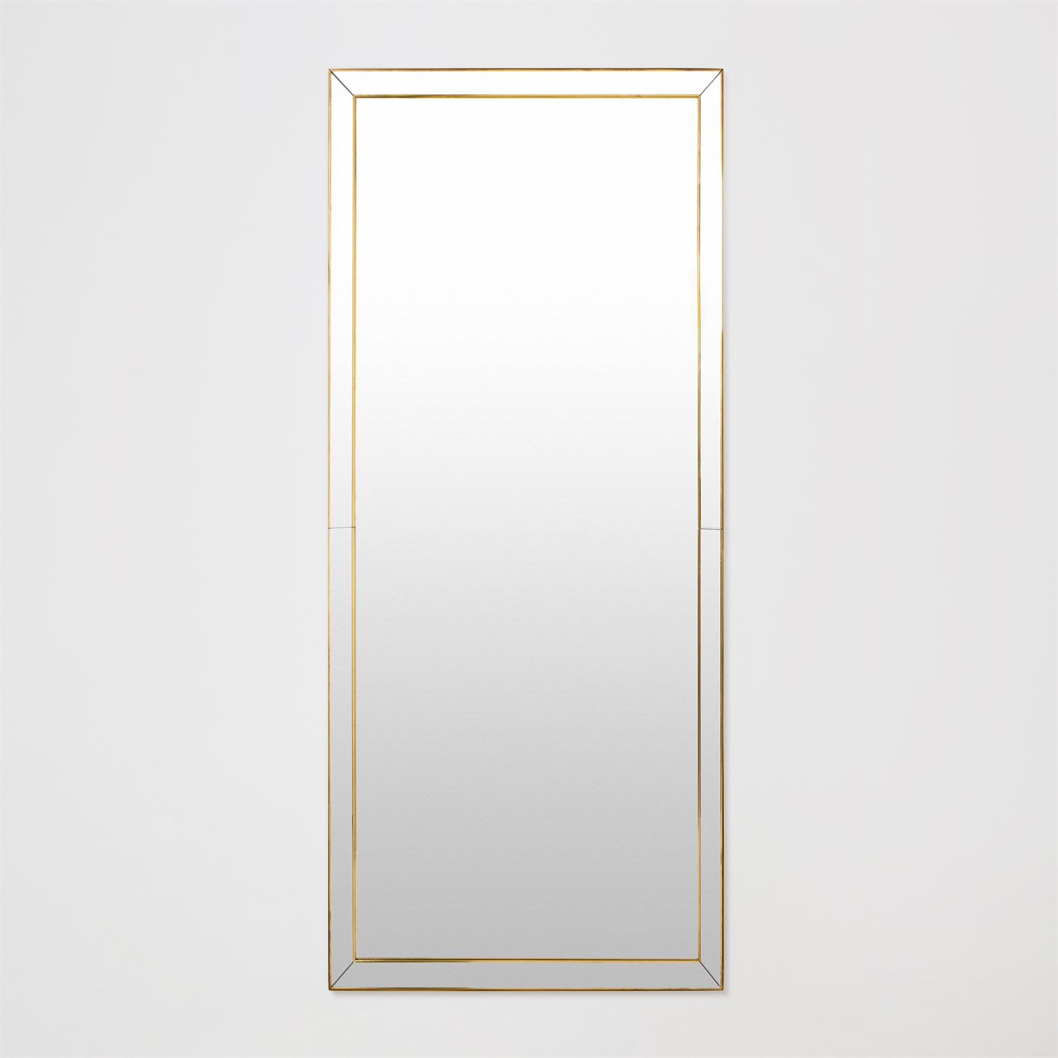 This Lovely Mirror collection showcases an elegant angled mirror frame accented with brushed brass-tone stainless steel outer frame and fillets, marrying modern sophistication with refined craftsmanship. The floor mirror can lean or be mounted vertically or horizontally, while the wall-mounted version offers the same versatile display options. Each piece is sold separately, allowing for curated arrangements within your space.