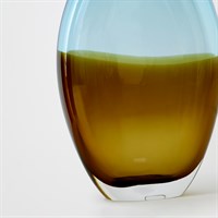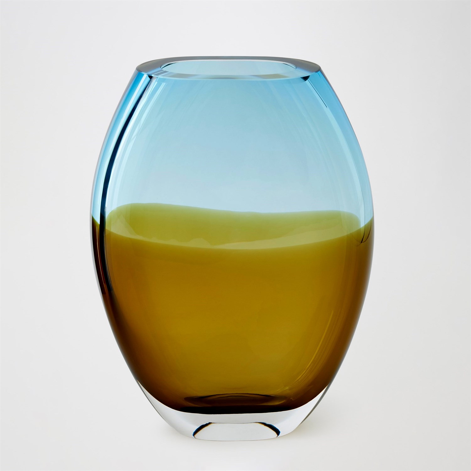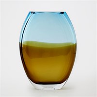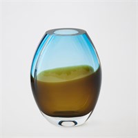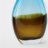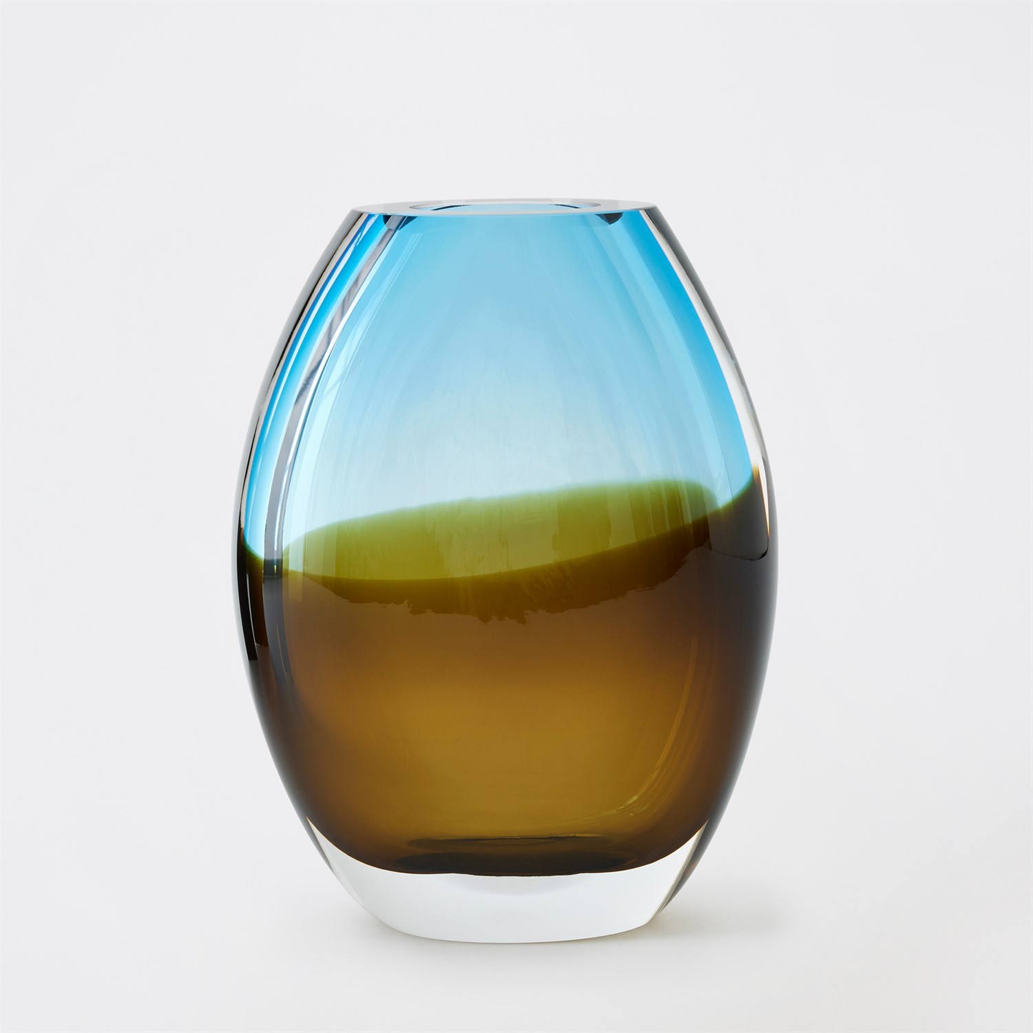 Mouth-blown in Poland, the Oval Vase Collection showcases exquisite art glass that captures a mesmerizing blend of topaz and blue hues. Each gracefully curved form reflects light and color in a dynamic display, celebrating the mastery of Polish glassmaking. Offered in large and small sizes, each piece is sold separately, allowing for curated, expressive arrangements.