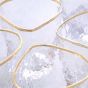 Mouth blown glass with hammered texture and handpainted gold rim.